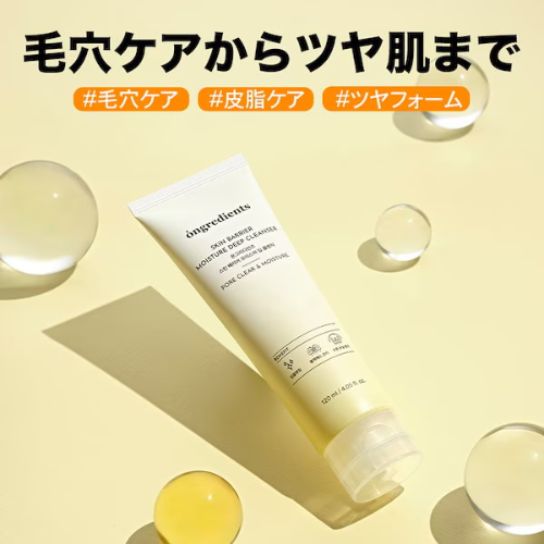 「Ongredients スキンバリア モイスチャーディープ クレンザー」は、AHA・LHA配合で古い角質や皮脂をやさしくオフしながら、ヒアルロン酸とアラントインがしっとり保湿してくれる洗顔フォームです。
