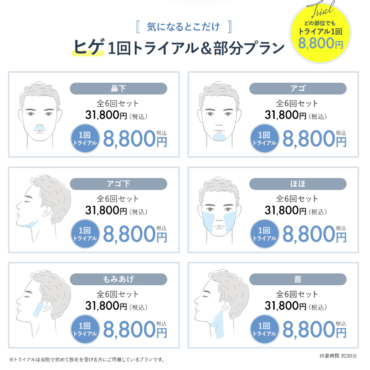| ヒゲ1部位 | 8,800円 | 31,800円 |