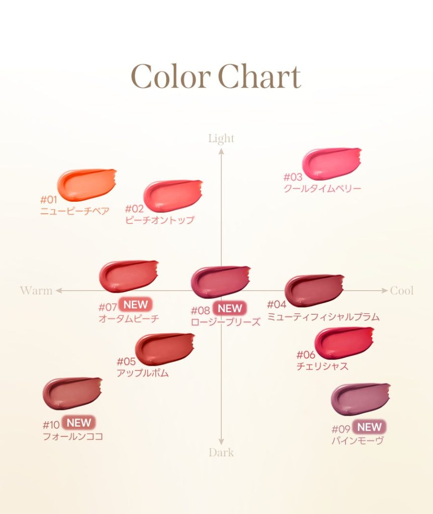 | 07 | オータムピーチ | 温かみのあるオレンジピーチ | イエベ春・秋 |